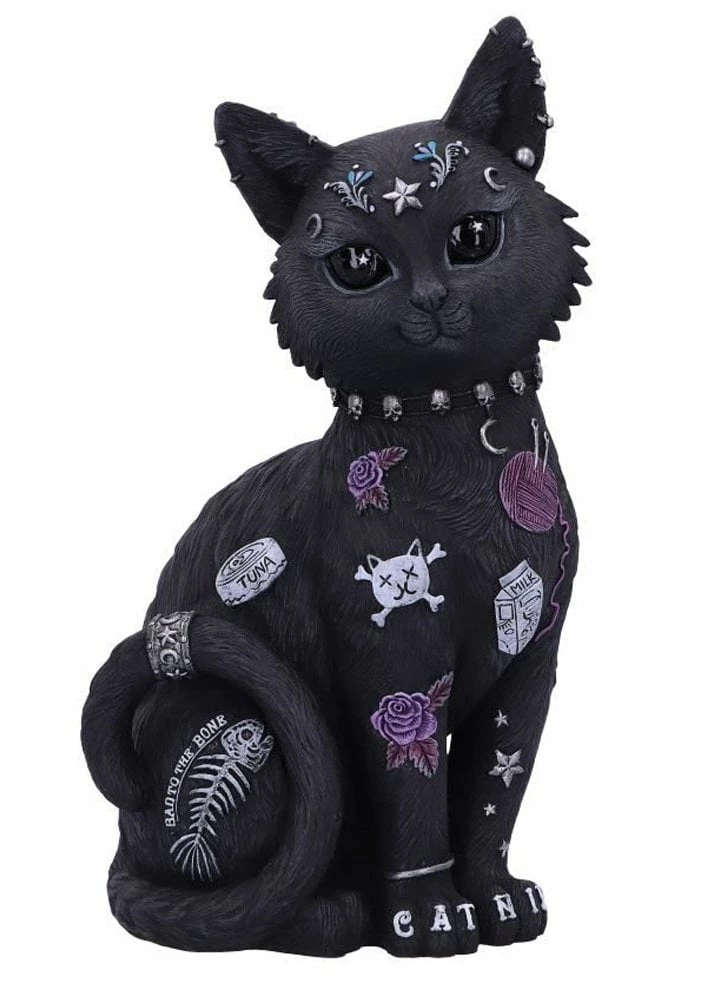 The Bad To the Bone Cat Figurine from Nemesis is a bewitching feline figure. This kitty figurine has handpainted tattoos and a choker.
