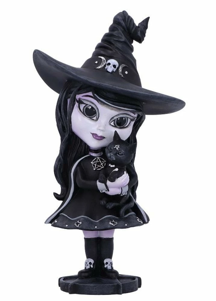 The Hexara Figurine is the cutest witch ornament. From Nemesis Now, this bitchin’ witch comes with her black kitty cat and hat with occult symbols.