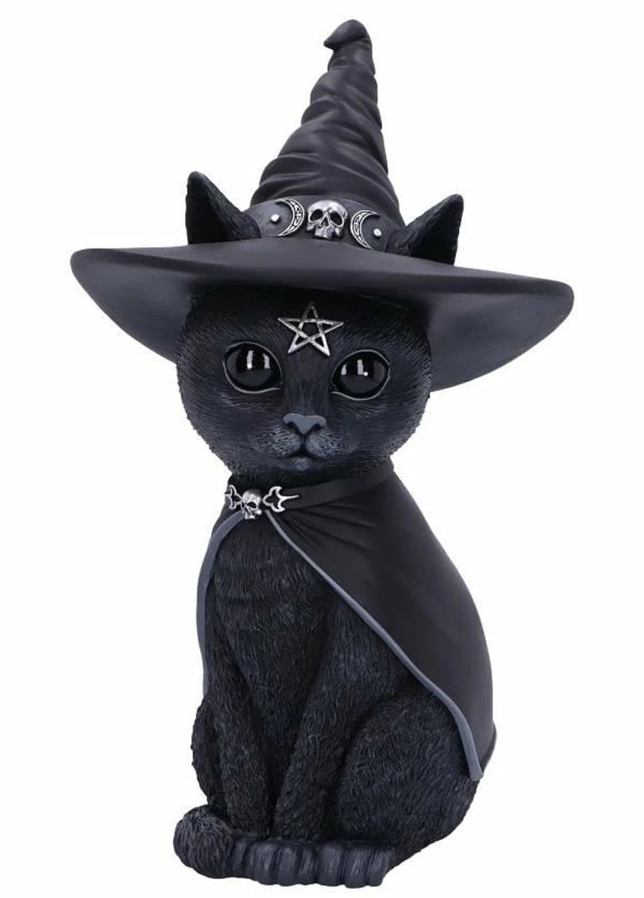 The Purrah Occult Cat Figurine from Nemesis is a bewitching feline figure. This kitty figurine wears a witches hat and is painstakingly hand painted.
