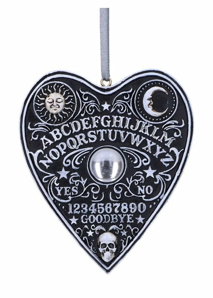 The Spirit Board Hanging Ornament from Nemesis Now is an alternative decoration for Yule. This little occult planchette ornament is perfect for your Christmas tree.