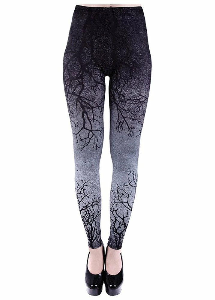 The Gray Branches Ombre Leggings are a pair of gothic full length leggings with an all over print of trees. Perfect for a casual witch look!
