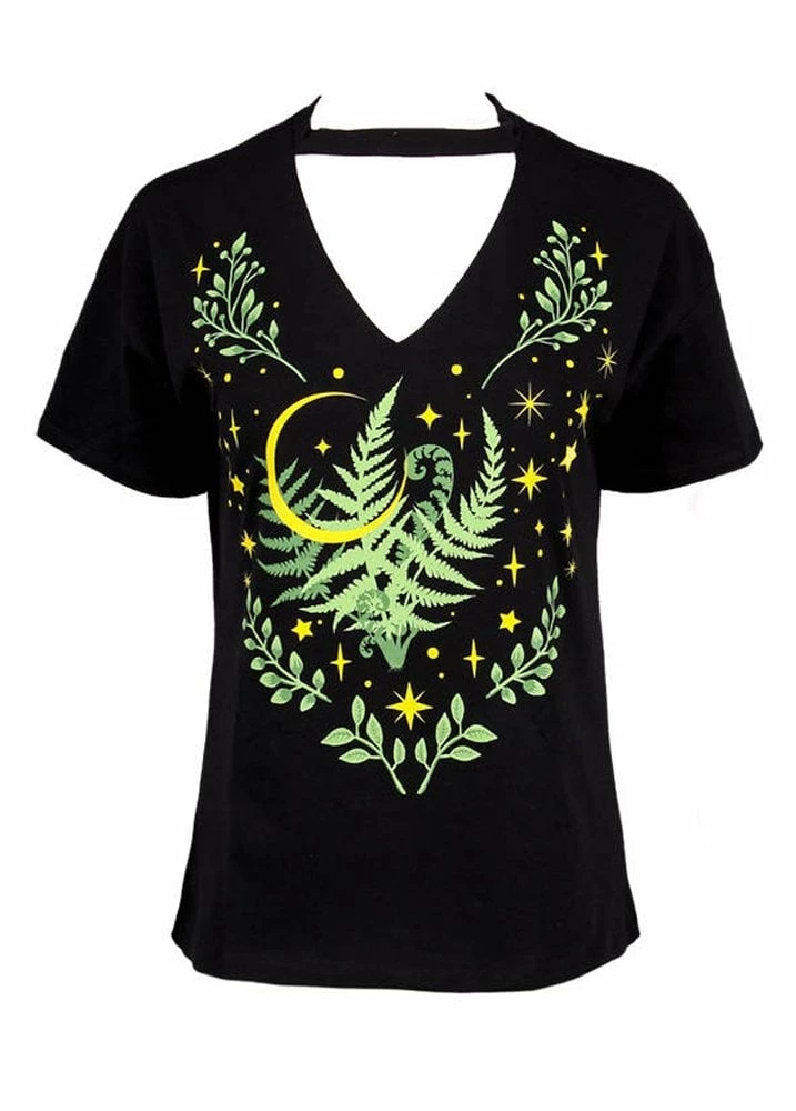 Restyle’s Herbal Choker T-Shirt is a comfy cotton tee. The T-shirt has a choker neckline and features a mythological fern flower front print.